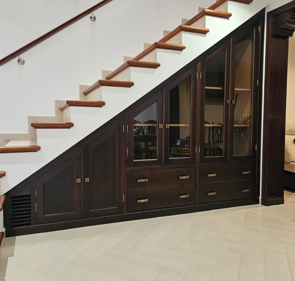 Somos especialistas en mobiliario de madera a medida, diseñando y fabricando desde el concepto inicial hasta la instalación final. Ya sea que necesites muebles de cocina, armarios empotrados, puertas de diseño, escaleras personalizadas o cualquier otro elemento en madera, garantizamos acabados de alta calidad y durabilidad.